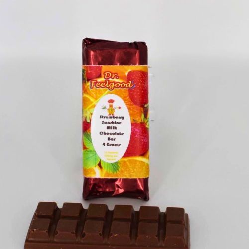 The 4g Strawberry Orange Flavored Milk Chocolate Bar by Dr. Feel Good combines the vibrant sweetness of strawberries and the tangy zest of orange with the creamy richness of smooth milk chocolate, all infused with 4 grams of premium psilocybin mushrooms. This bar is divided into 12 evenly portioned squares, with approximately 333mg per square, allowing for consistent and manageable dosing.